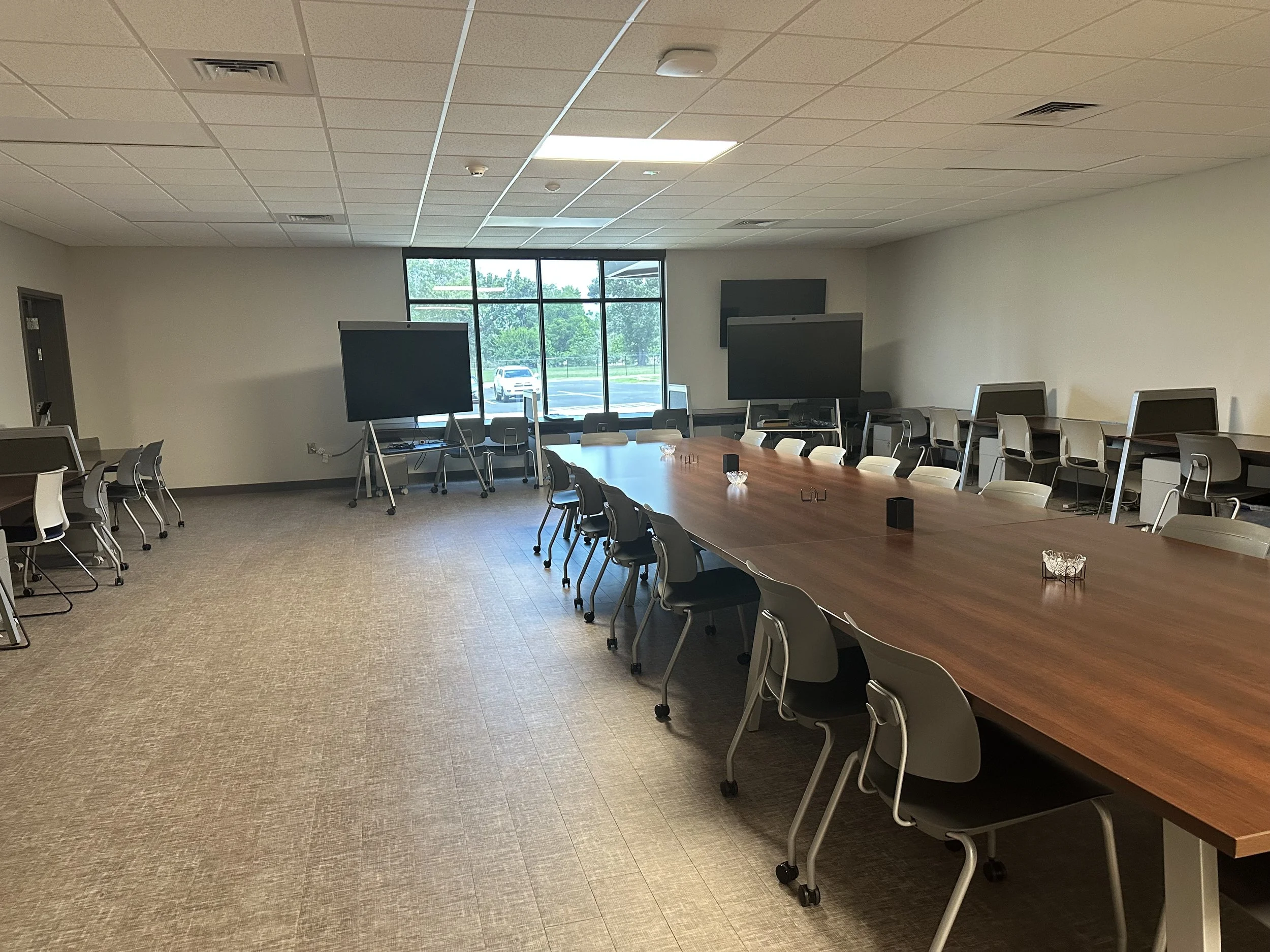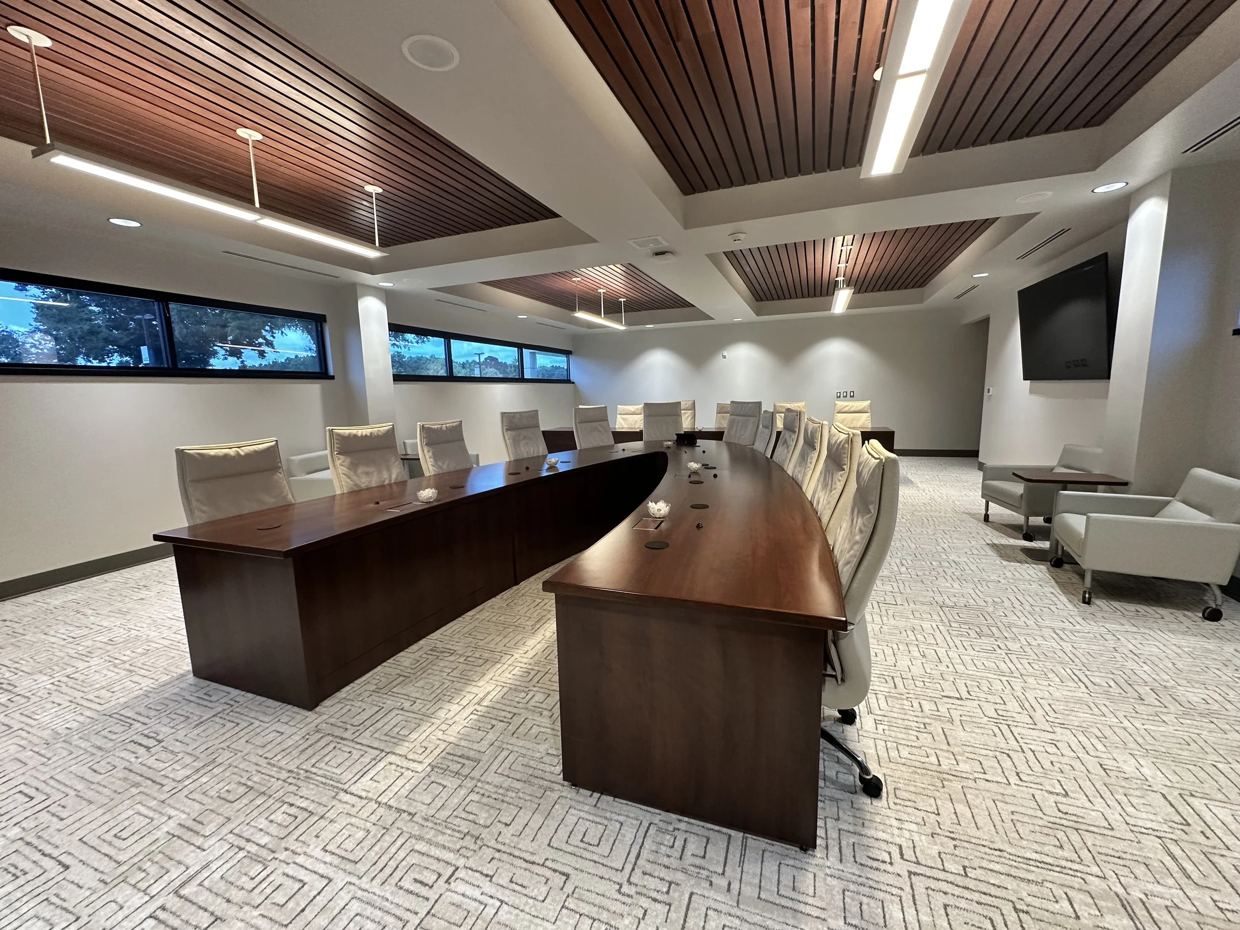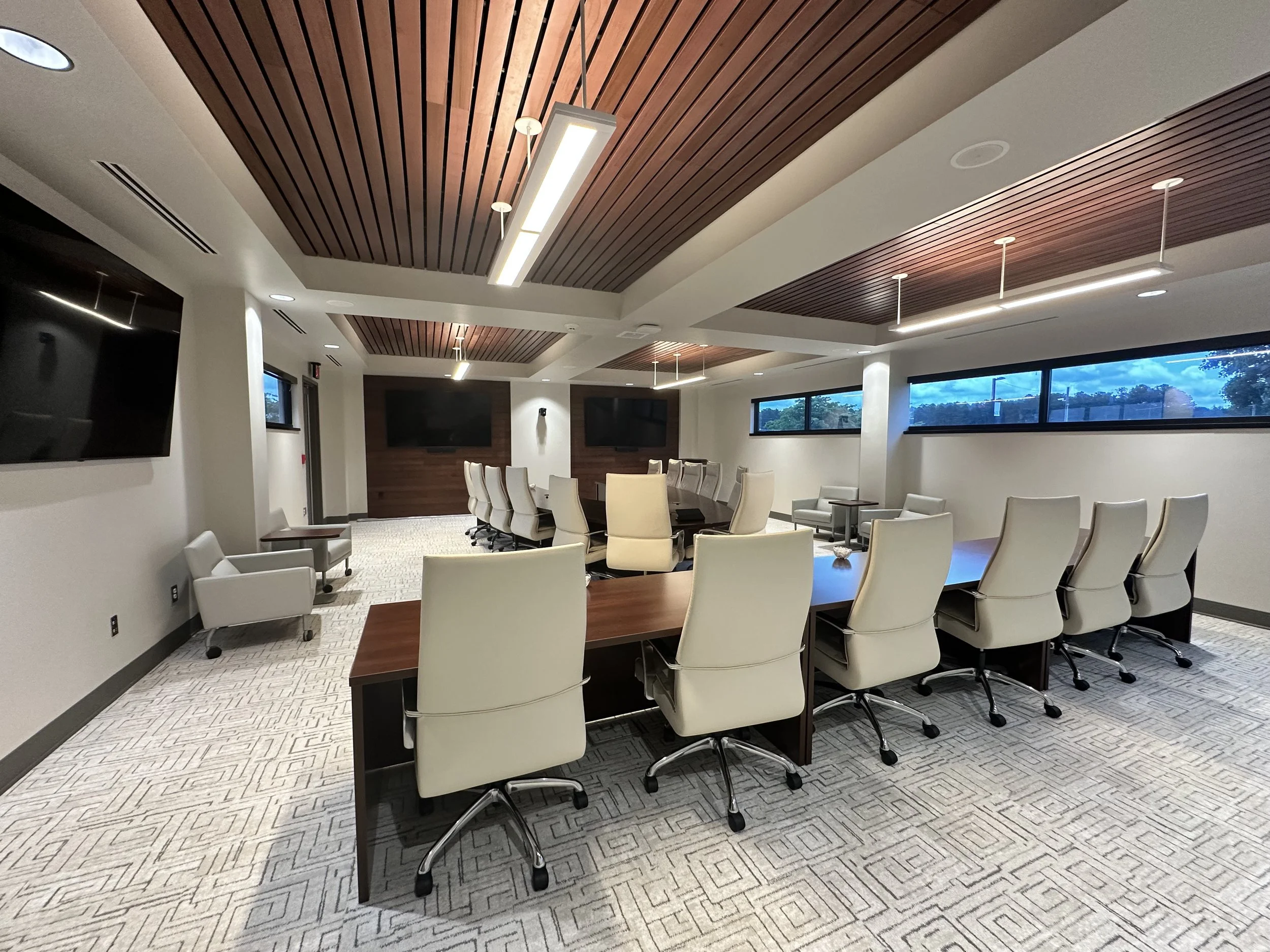 In this project, we completely revamped the security system with all new equipment for access control and cameras. We blended existing furniture (recently purchased) with new furniture to manage costs, while maintaining the new aesthetic. We upgraded all interior finishes throughout the facility and upgraded all AV systems with new Neat technology that has a user-friendly interface platform. Finally, all new interior directional signs were design and installed to match the updated interior.