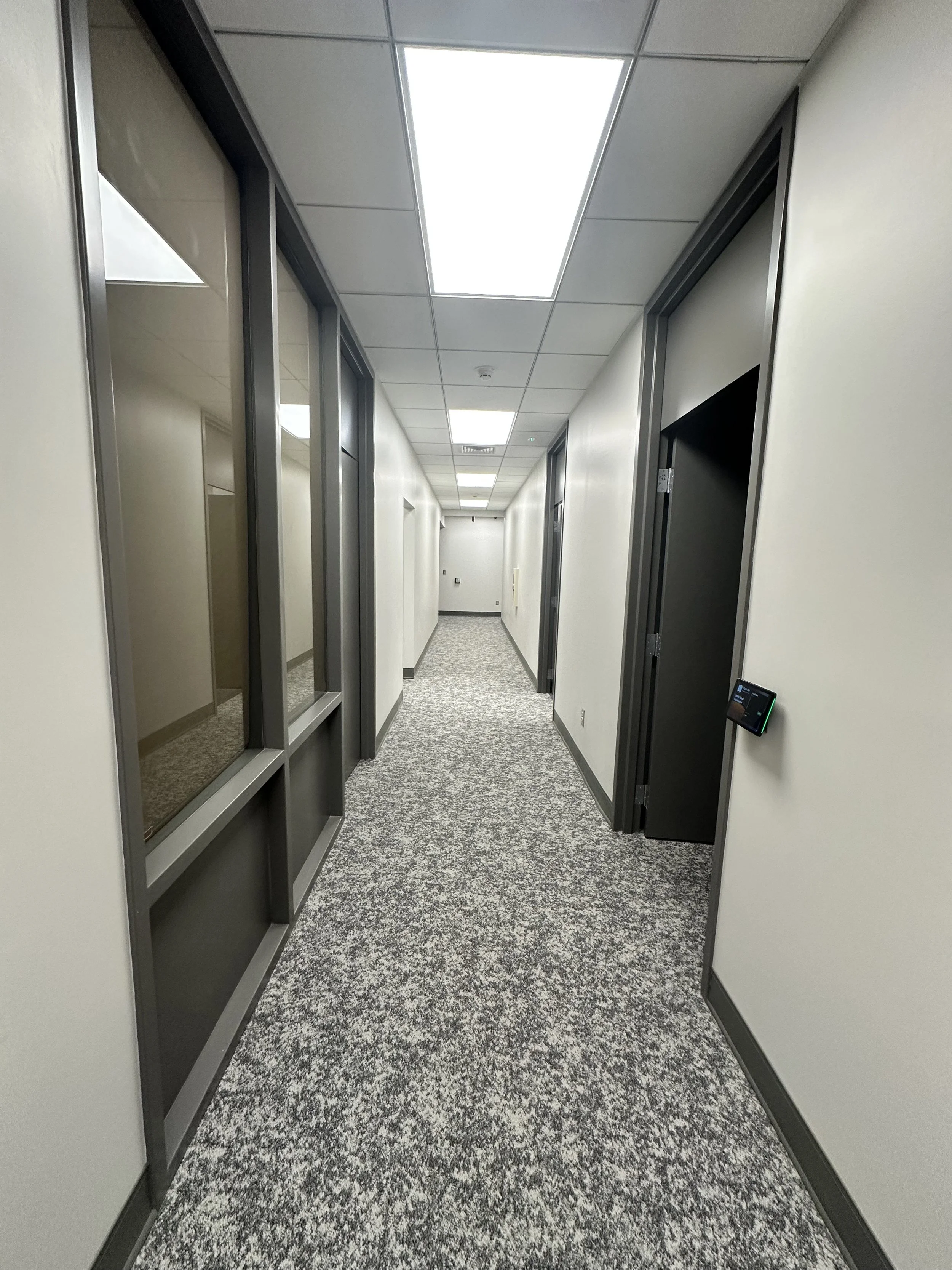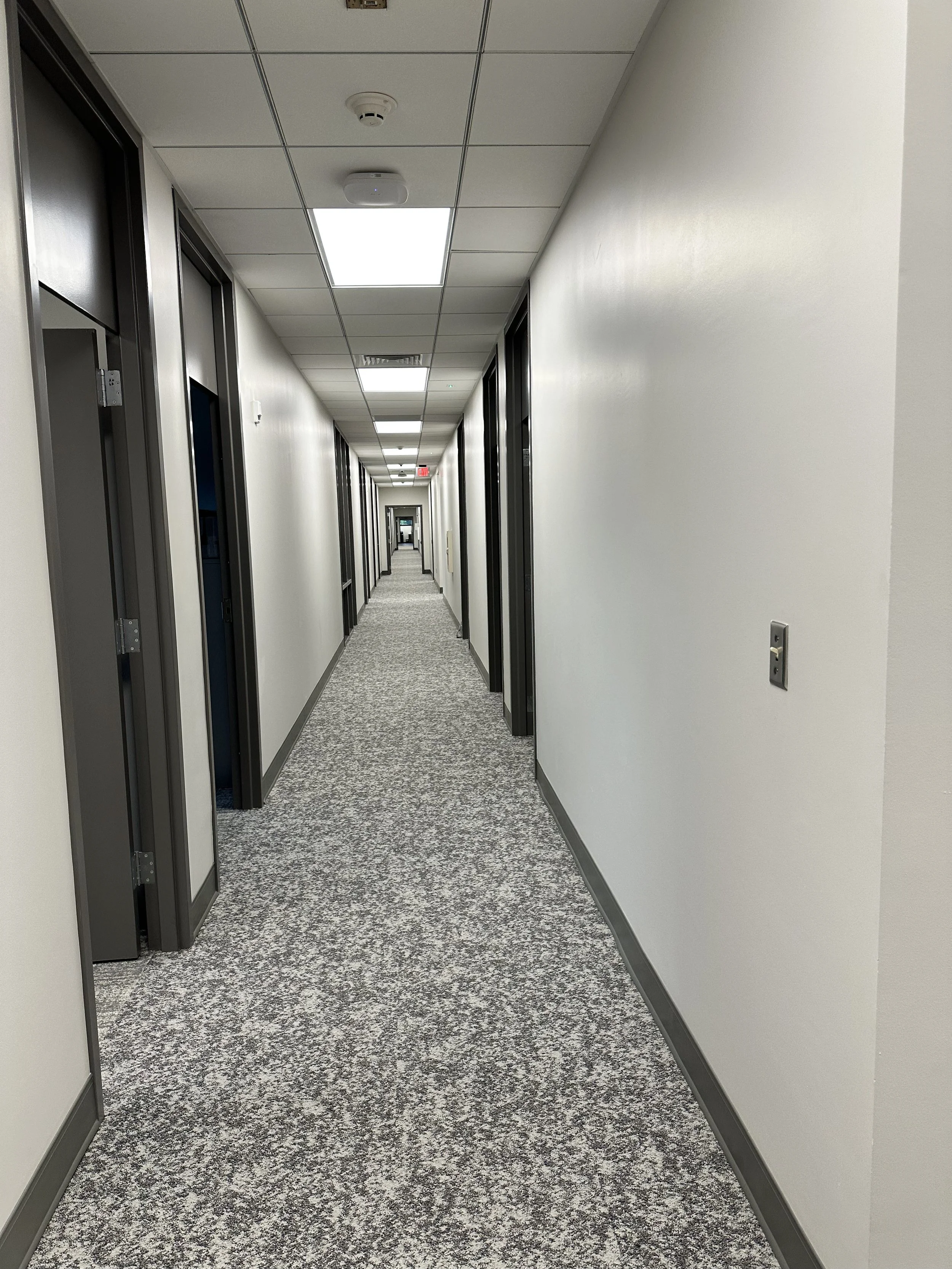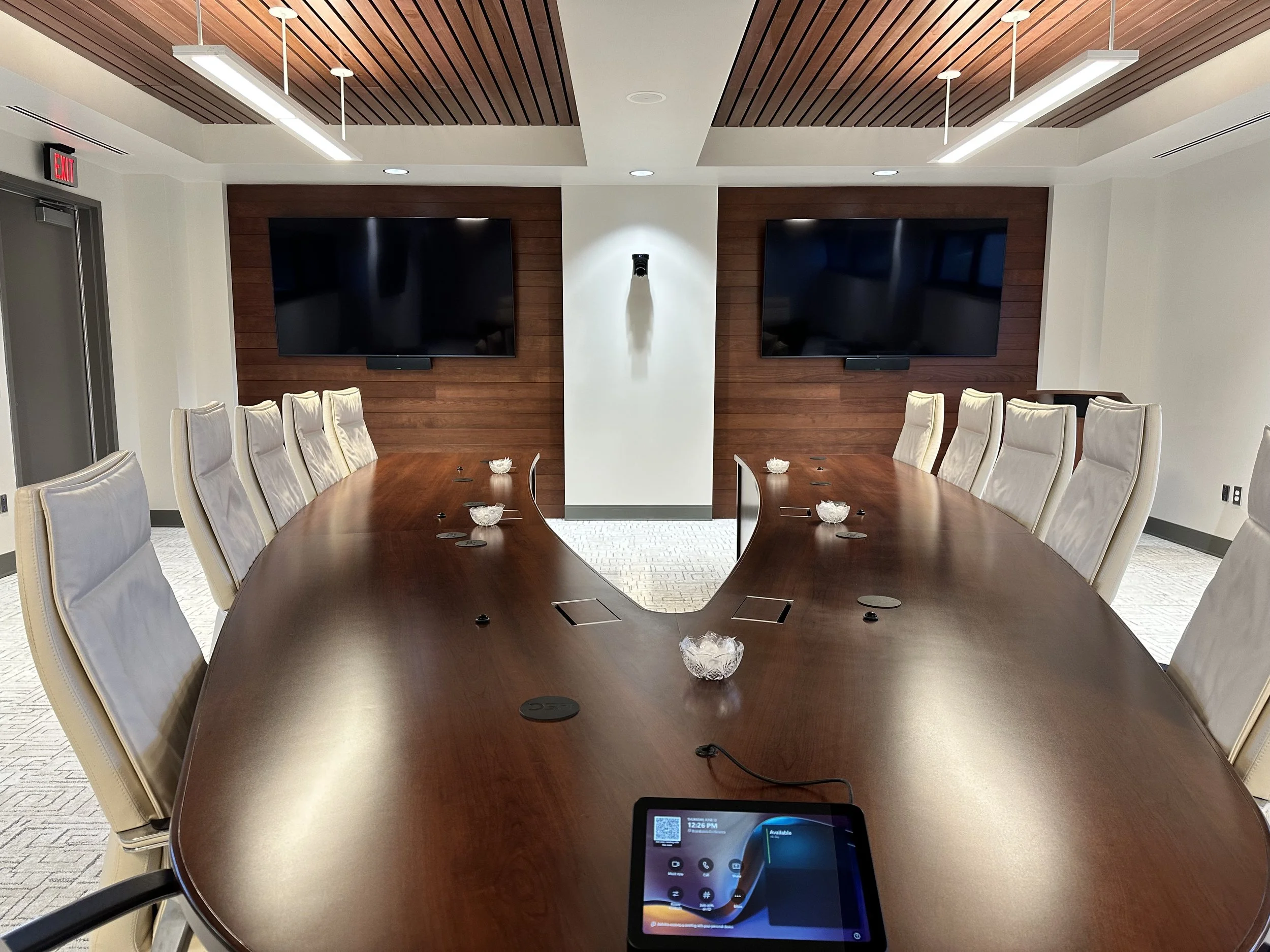In this project, we completely revamped the security system with all new equipment for access control and cameras. We blended existing furniture (recently purchased) with new furniture to manage costs, while maintaining the new aesthetic. We upgraded all interior finishes throughout the facility and upgraded all AV systems with new Neat technology that has a user-friendly interface platform. Finally, all new interior directional signs were design and installed to match the updated interior.
